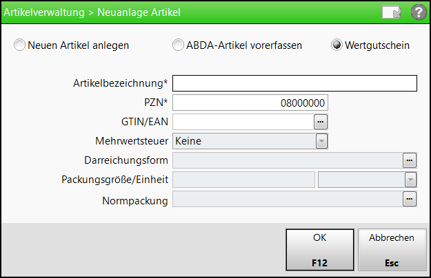 Wertgutscheine werden immer als POR-Artikel angelegt.