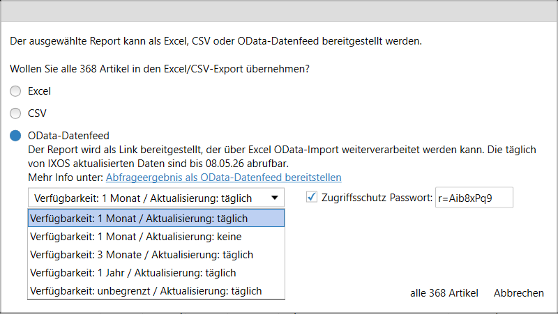 tägliche Aktualisierung: IXOS generiert den Report täglich neu und stellt den Daten-Link bereit.